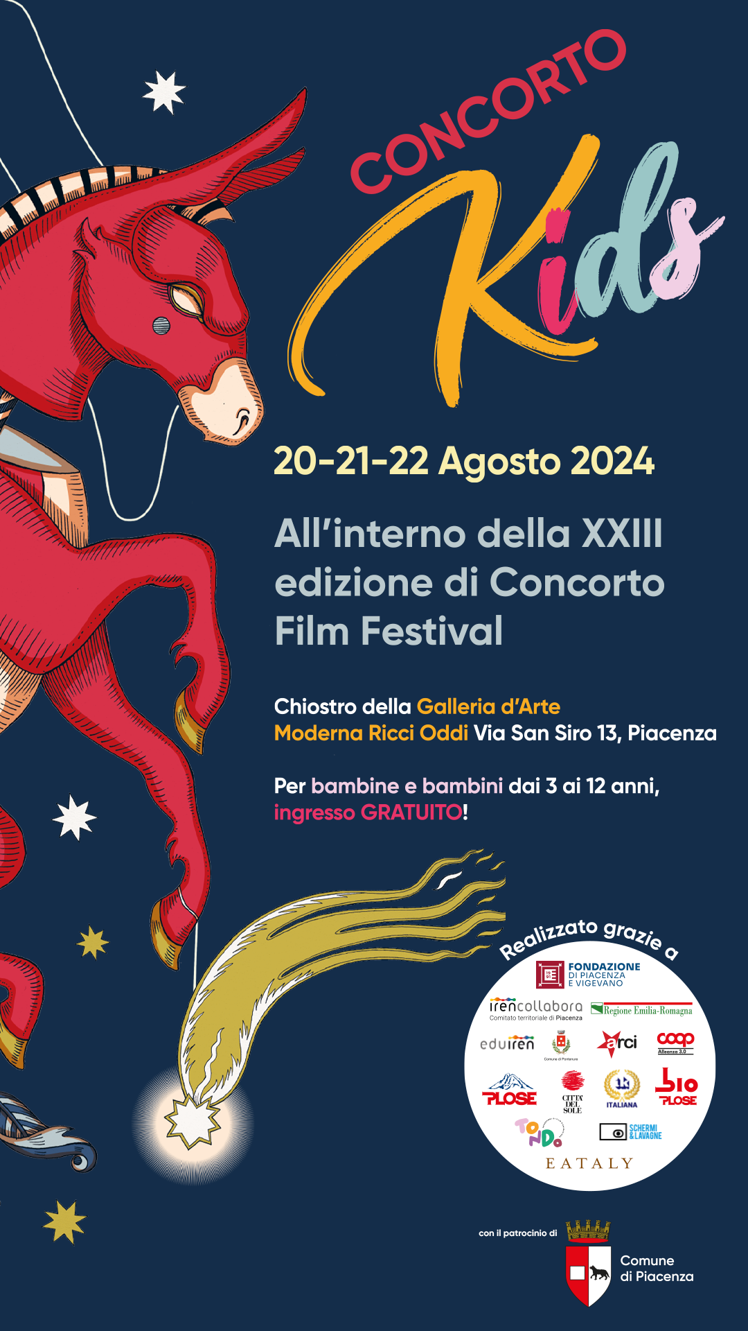 La manifestazione è organizzata dall’Associazione Concorto ed è in programma a Pontenure (PC) presso l’arena e il teatro-serra di Parco Raggio e in vari luoghi a Piacenza dal 17 al 24 agosto 2024.