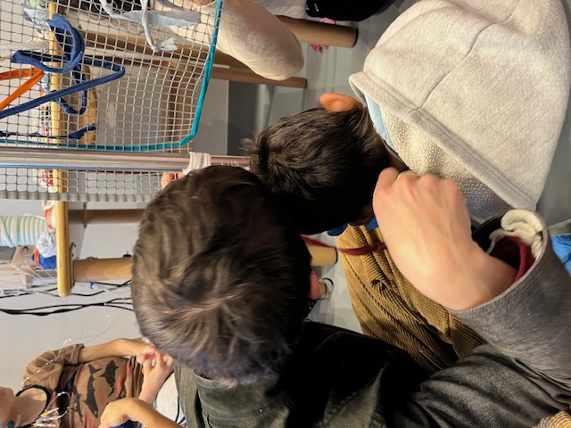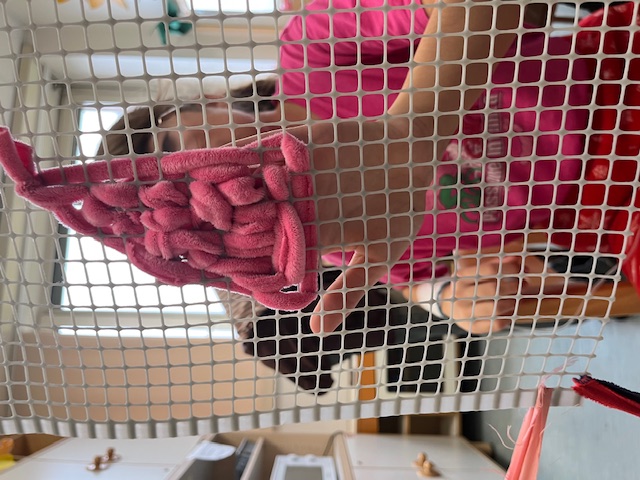 Durante il laboratorio i bambini e le bambine, utilizzando delle matasse di materiali e colori diversi, filati da tessuti considerati ormai dei rifiuti, hanno creato due quadri rappresentanti le fiabe. Attraverso intrecci colorati, la collaborazione e lo scambio, hanno rappresentato personaggi fantasiosi, emozioni e simboli, appartenenti al mondo immaginario.