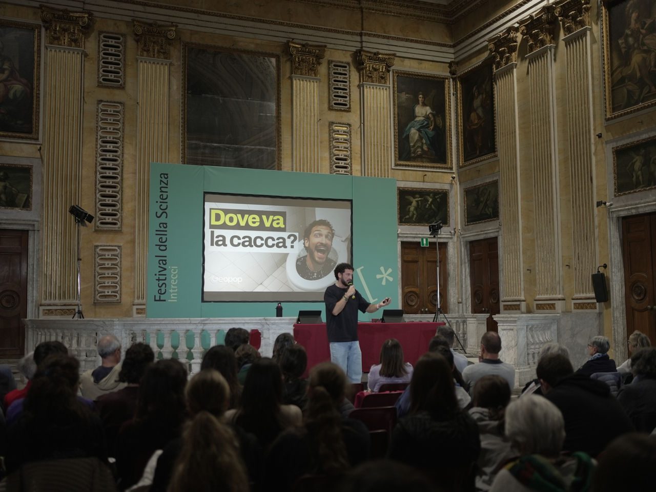 La conferenza Che fine fa la nostra cacca? La scienza di un depuratore ha visto come protagonista Riccardo De Marco, in arte Il DeNa, il content creator di Geopop specializzato in chimica. Un moderno ''scienziato pazzo'' amatissimo dalla GenZ che, partendo da una domanda semplice e un po’ provocatoria “Dove finisce la nostra cacca dopo che tiriamo lo sciacquone?”, ha raccontato con un video originale e divertente, realizzato con Eduiren, le diverse tappe del processo di depurazione delle acque reflue, dai pretrattamenti, all’ossidazione biogica fino all’ultrafiltrazione e al riuso dell’acqua ripulita e dei fanghi.
