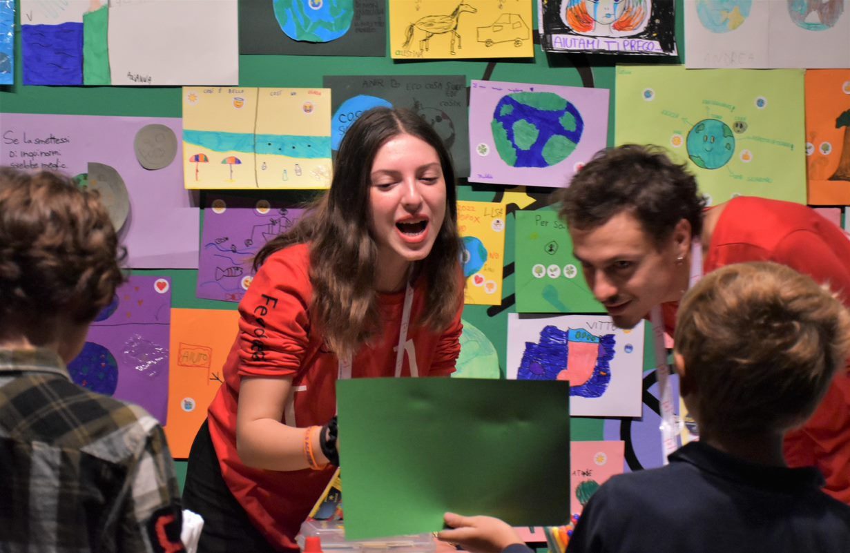 Il laboratorio ha offerto un percorso articolato, che ha incluso la visione di cortometraggi focalizzati sulle buone pratiche ambientali, la partecipazione a giochi enigmistici e la possibilità di esprimere idee e impegno attraverso atelier artistici, dove i partecipanti hanno potuto condividere le loro visioni e il loro impegno per il futuro con disegni e speciali “eco-emoji”.