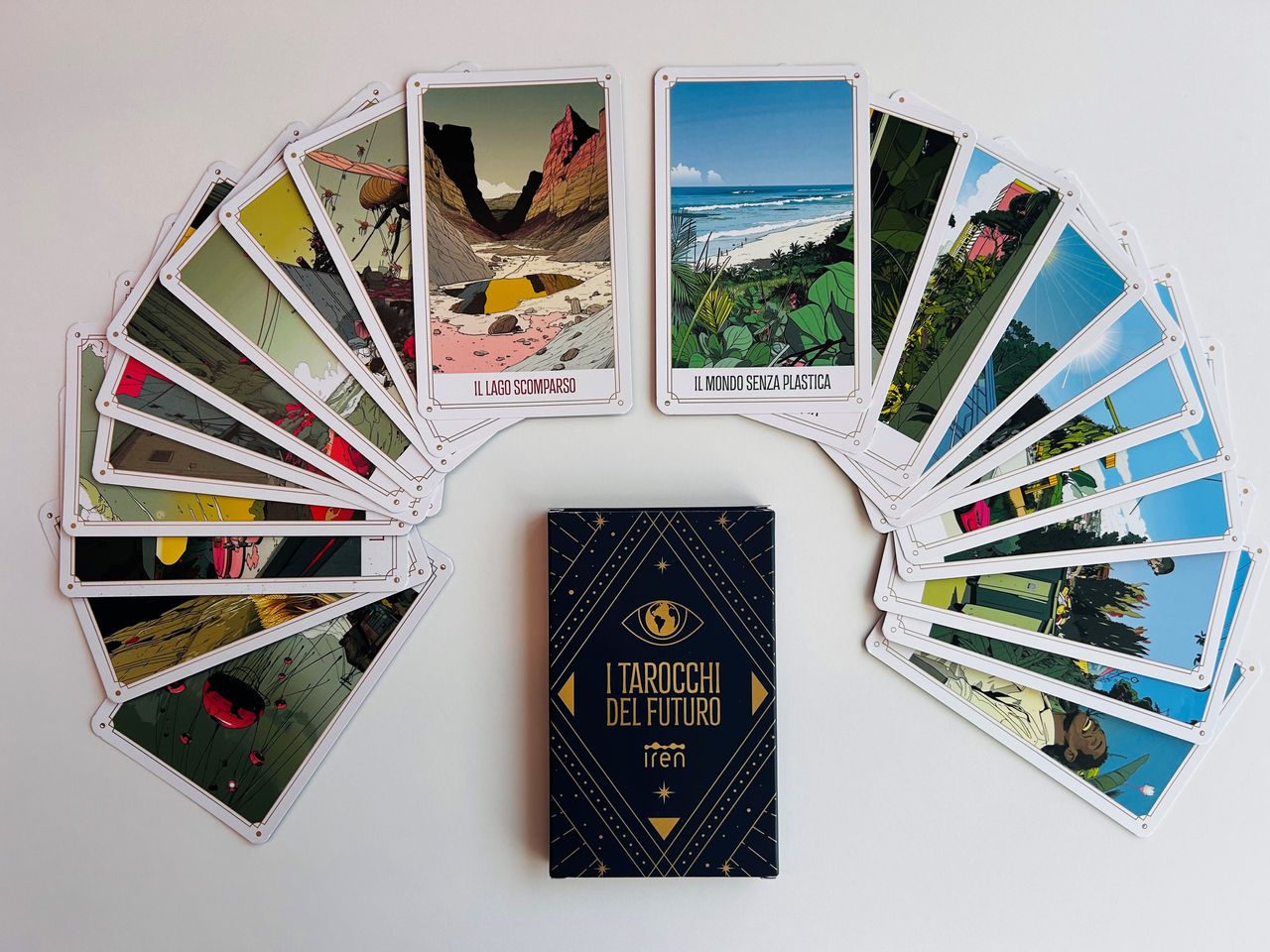 Le carte rappresentano i “tarocchi del futuro”: raffigurano, da una parte, un pianeta minacciato da catastrofi naturali, che potrebbe accadere se continuiamo ad agire in modo irresponsabile, e dall’altra tecnologie, comportamenti e scenari sostenibili.