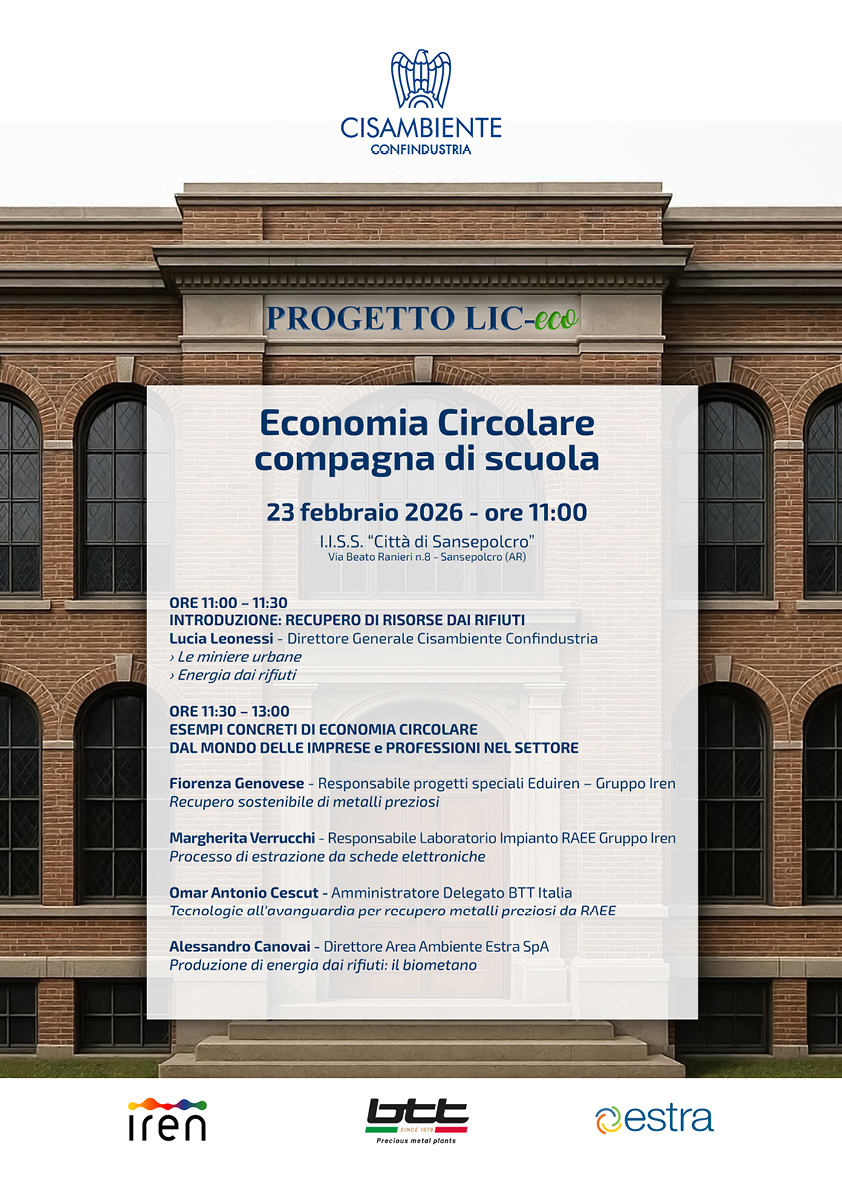 L’Economia Circolare è entrata in classe con il Progetto Lic-Eco di Cisambiente Confindustria che ha coinvolto gli studenti dei Licei della Toscana in un percorso formativo sull'ambiente con uno sguardo attento alle opportunità professionali offerte dal settore.